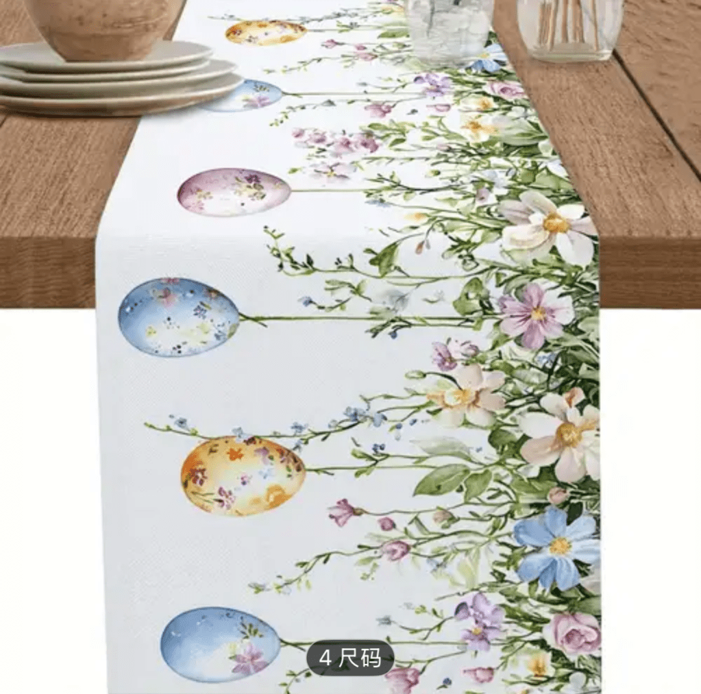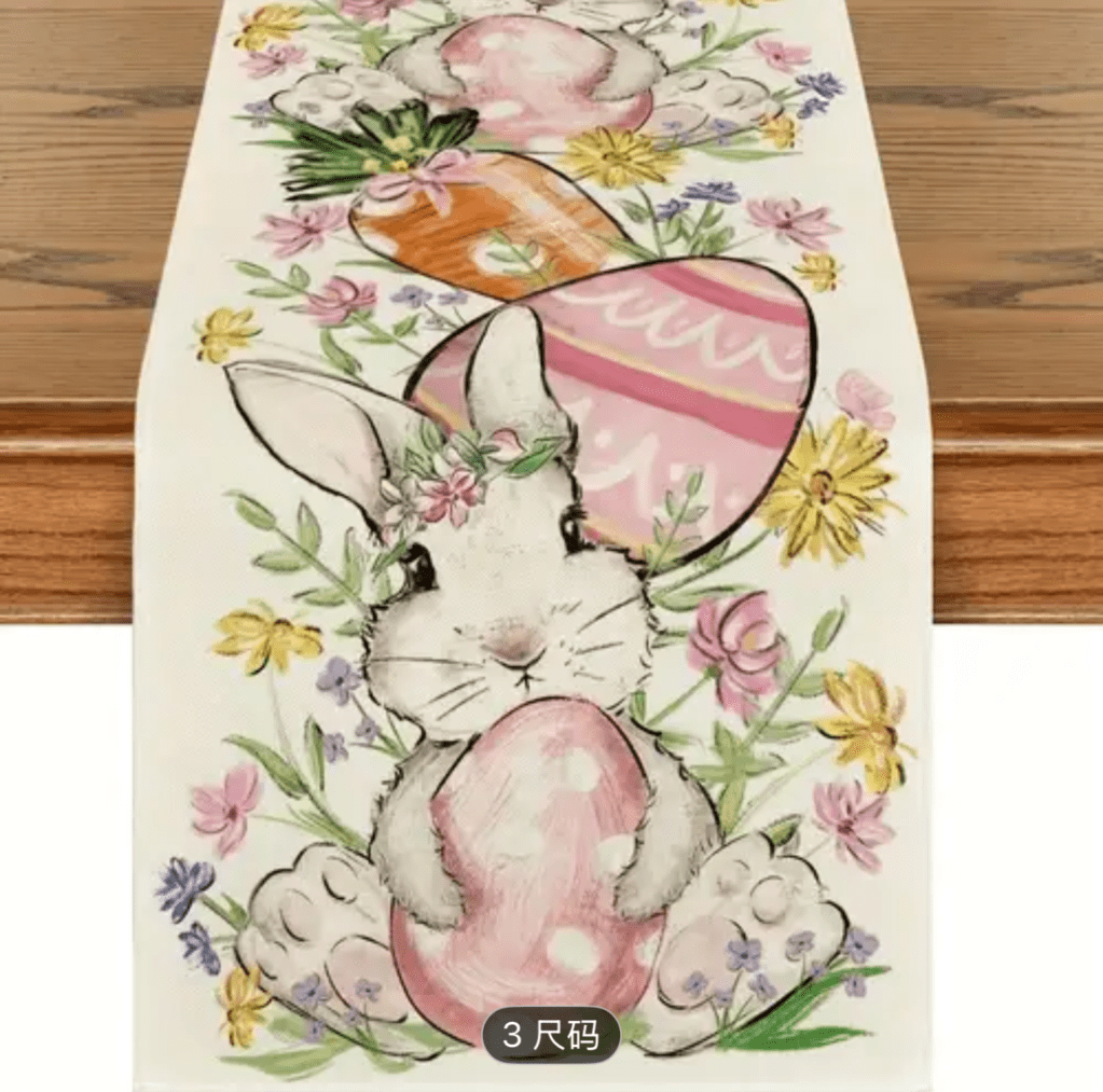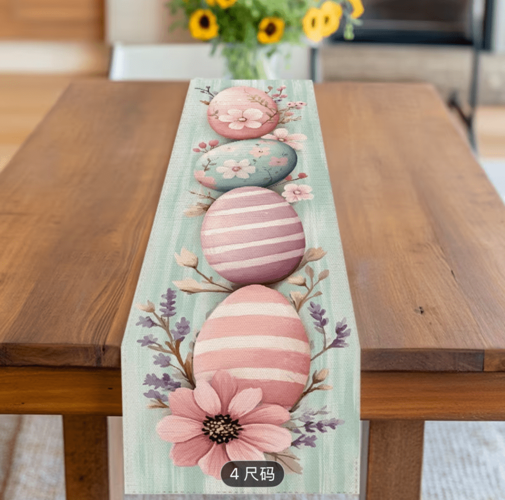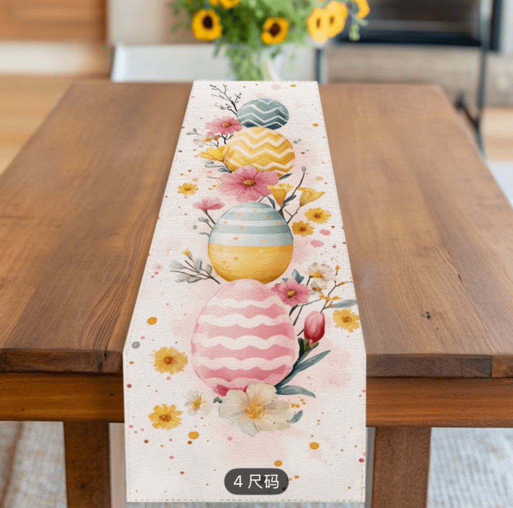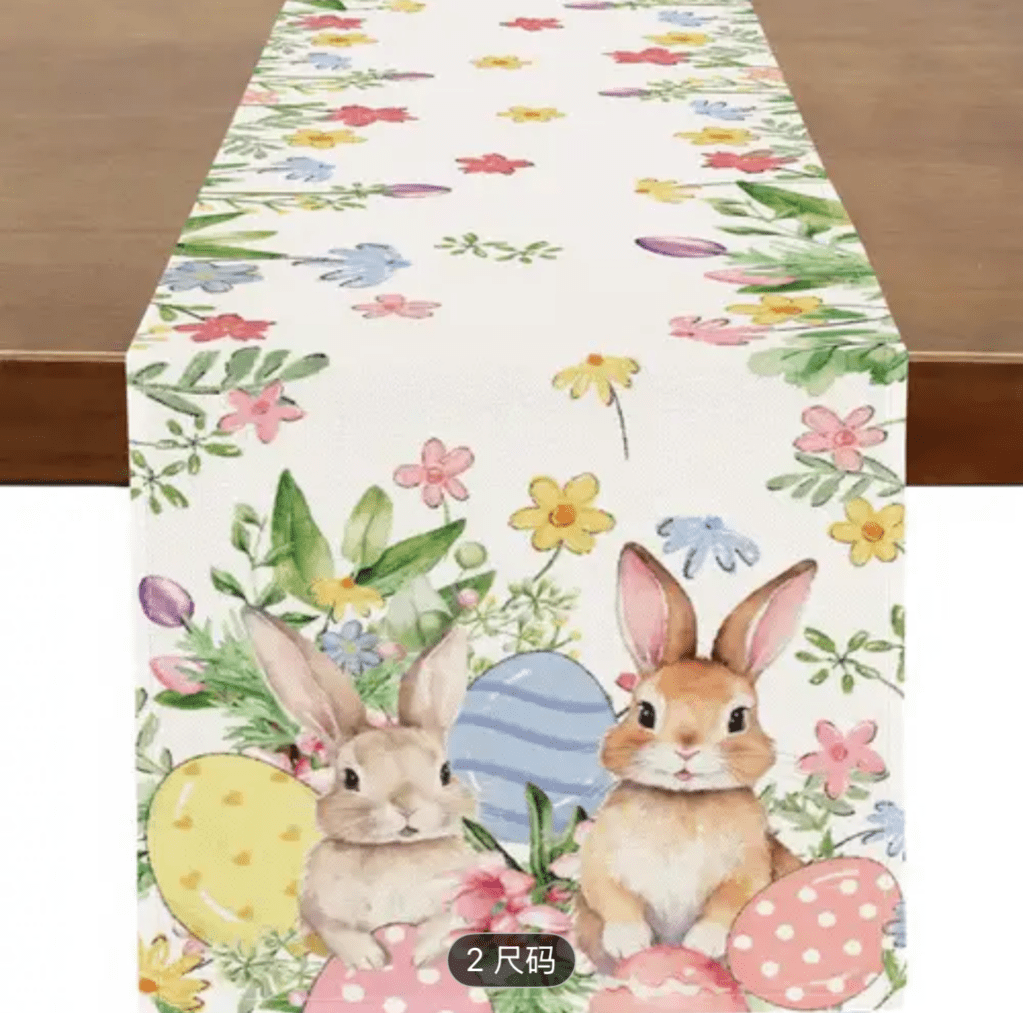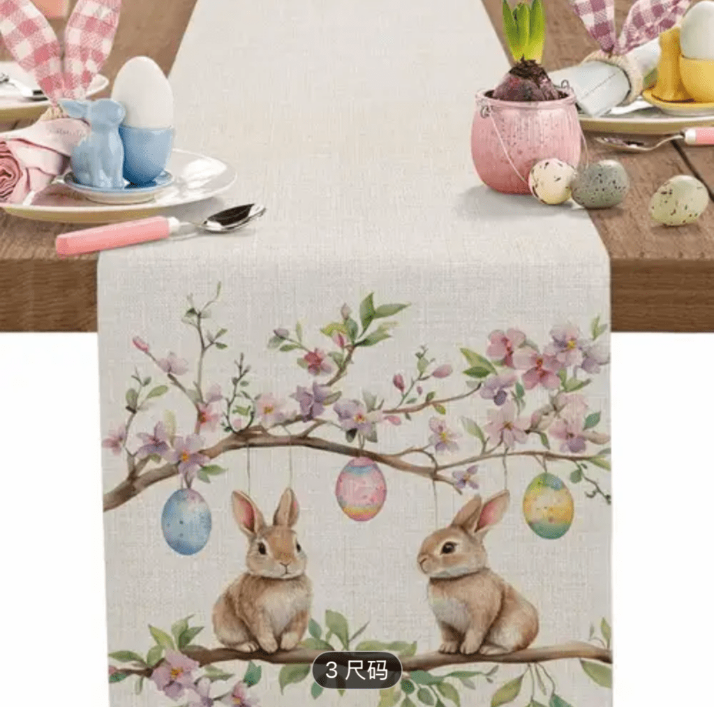 on Easter table runner/ Camino de mesa de Pascua
