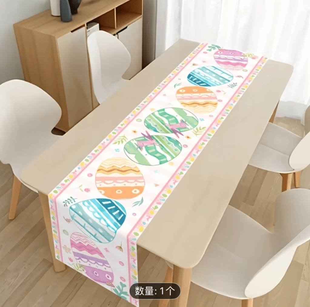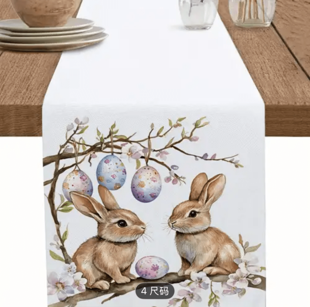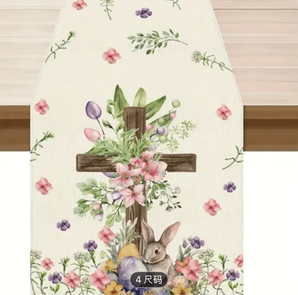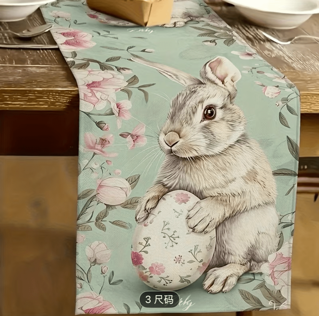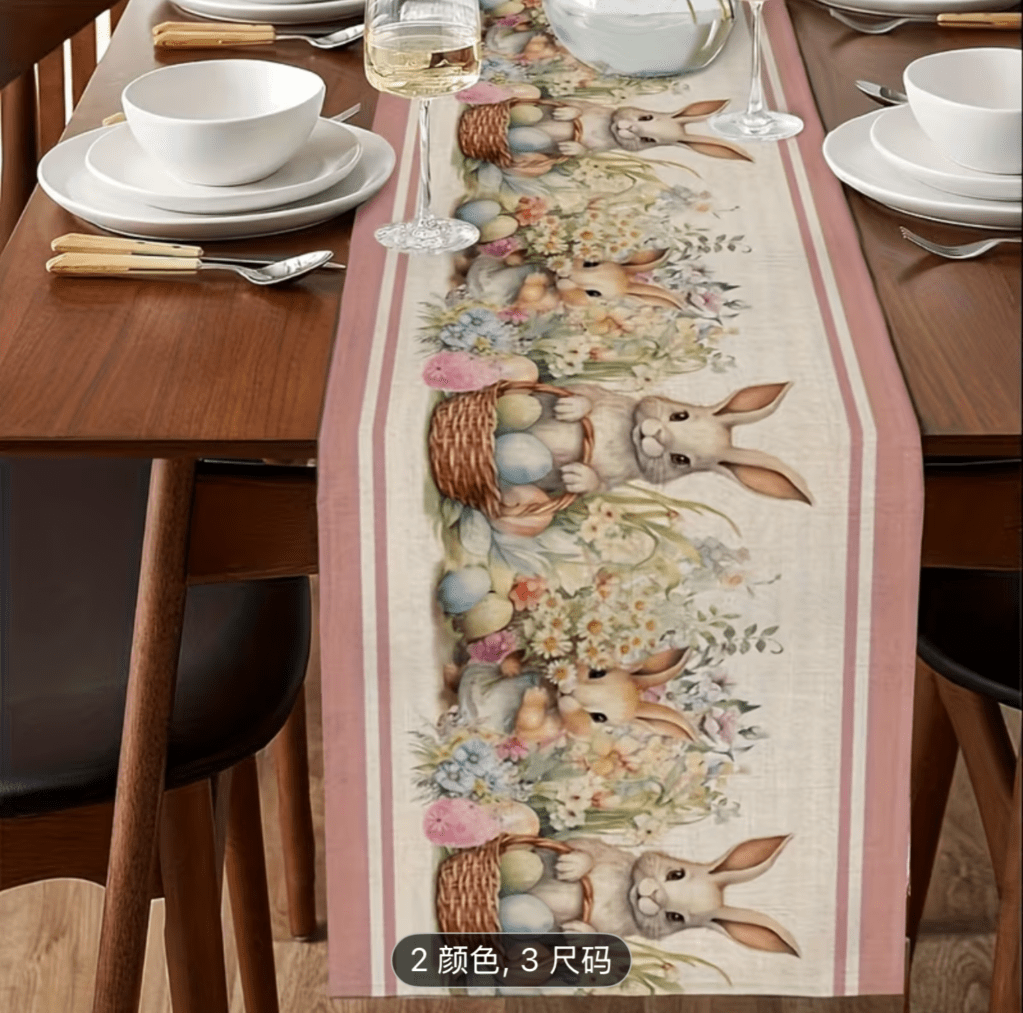 on Easter table runner/ Camino de mesa de Pascua