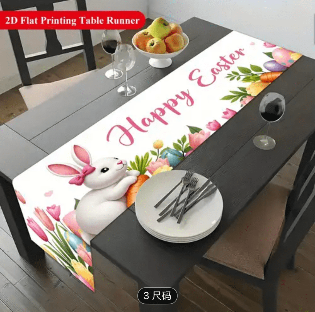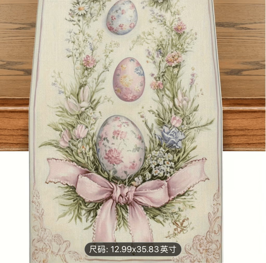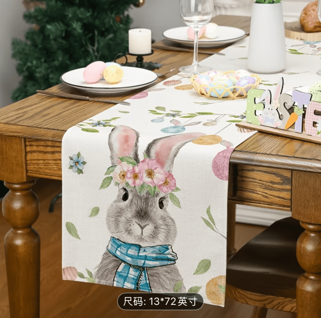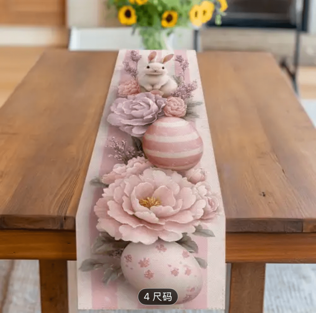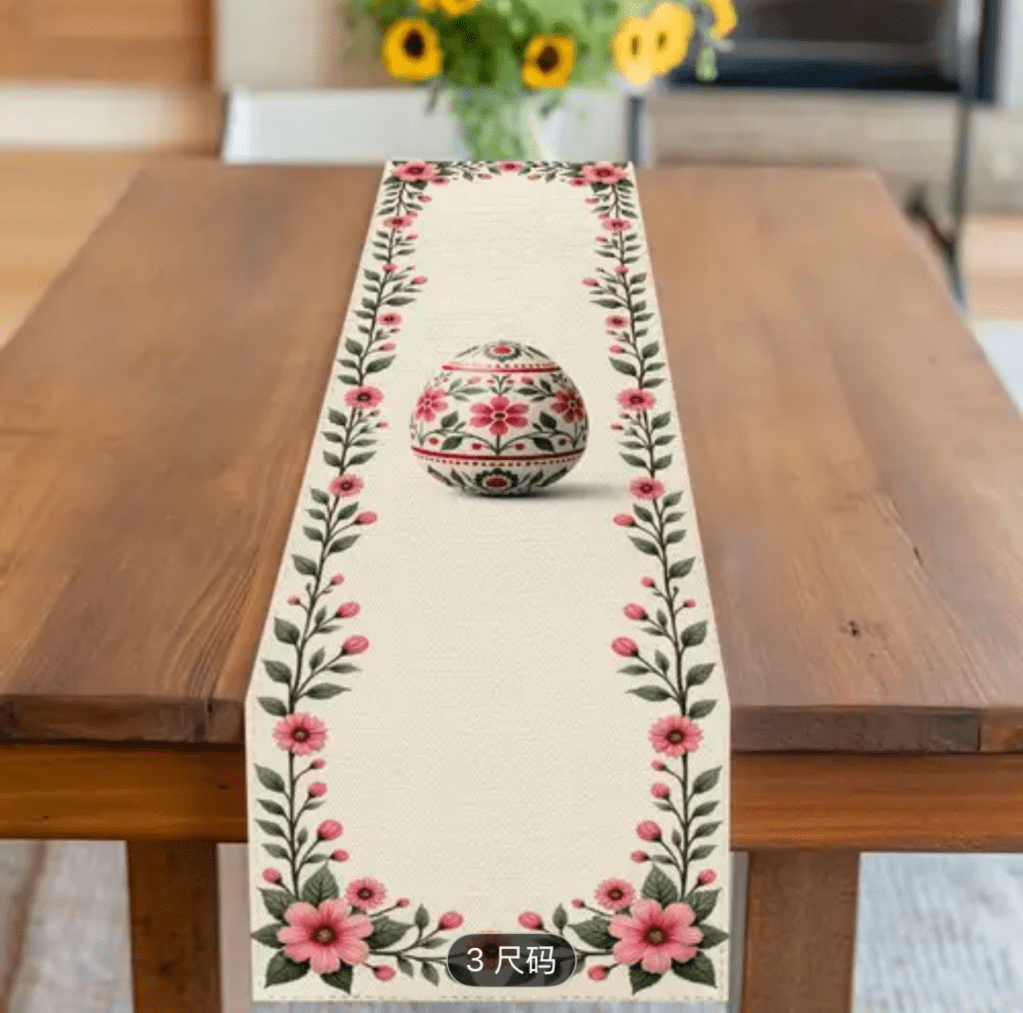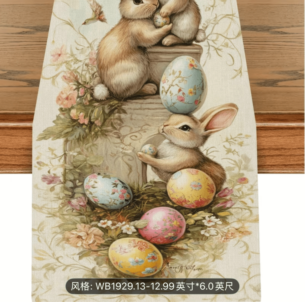 on Easter table runner/ Camino de mesa de Pascua