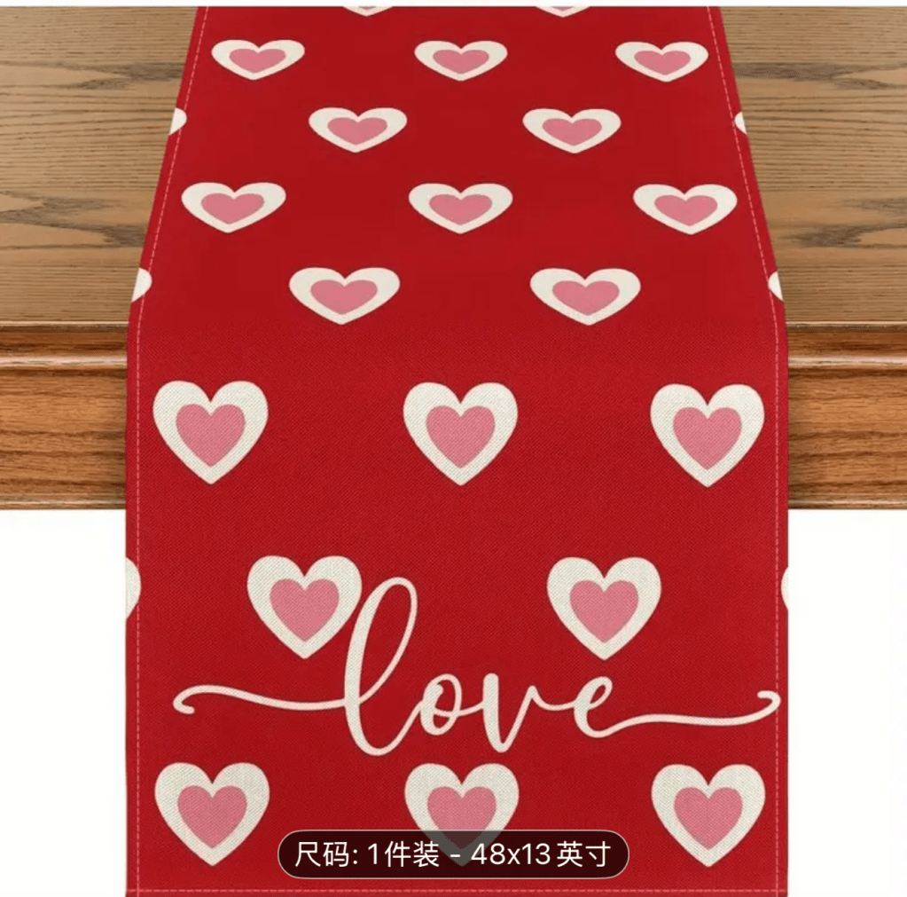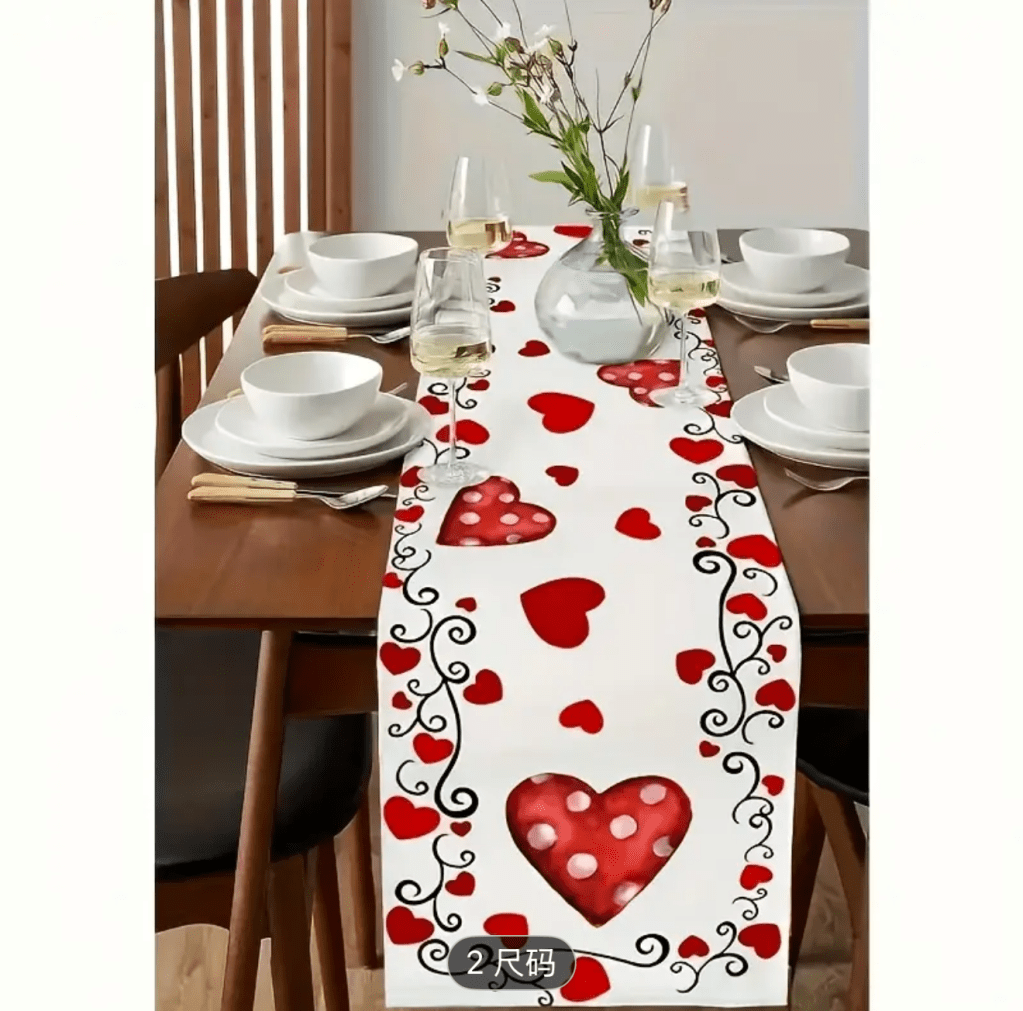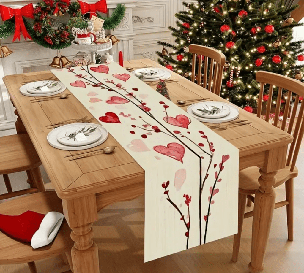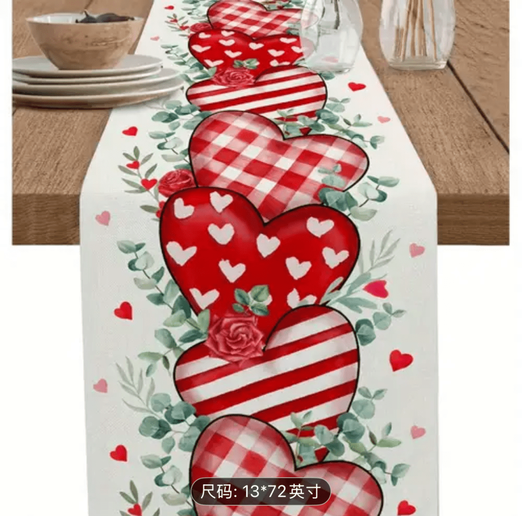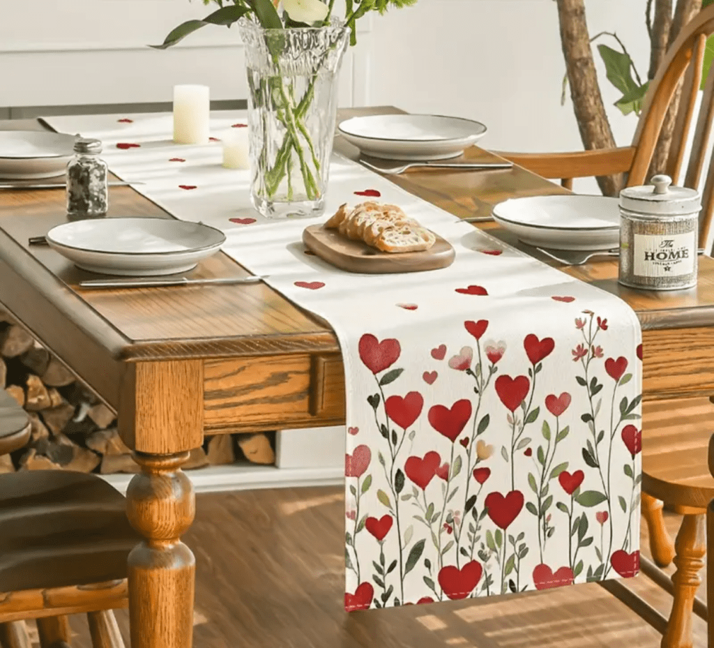 on Valentine’s Day table runner/ Camino de mesa para San Valentín