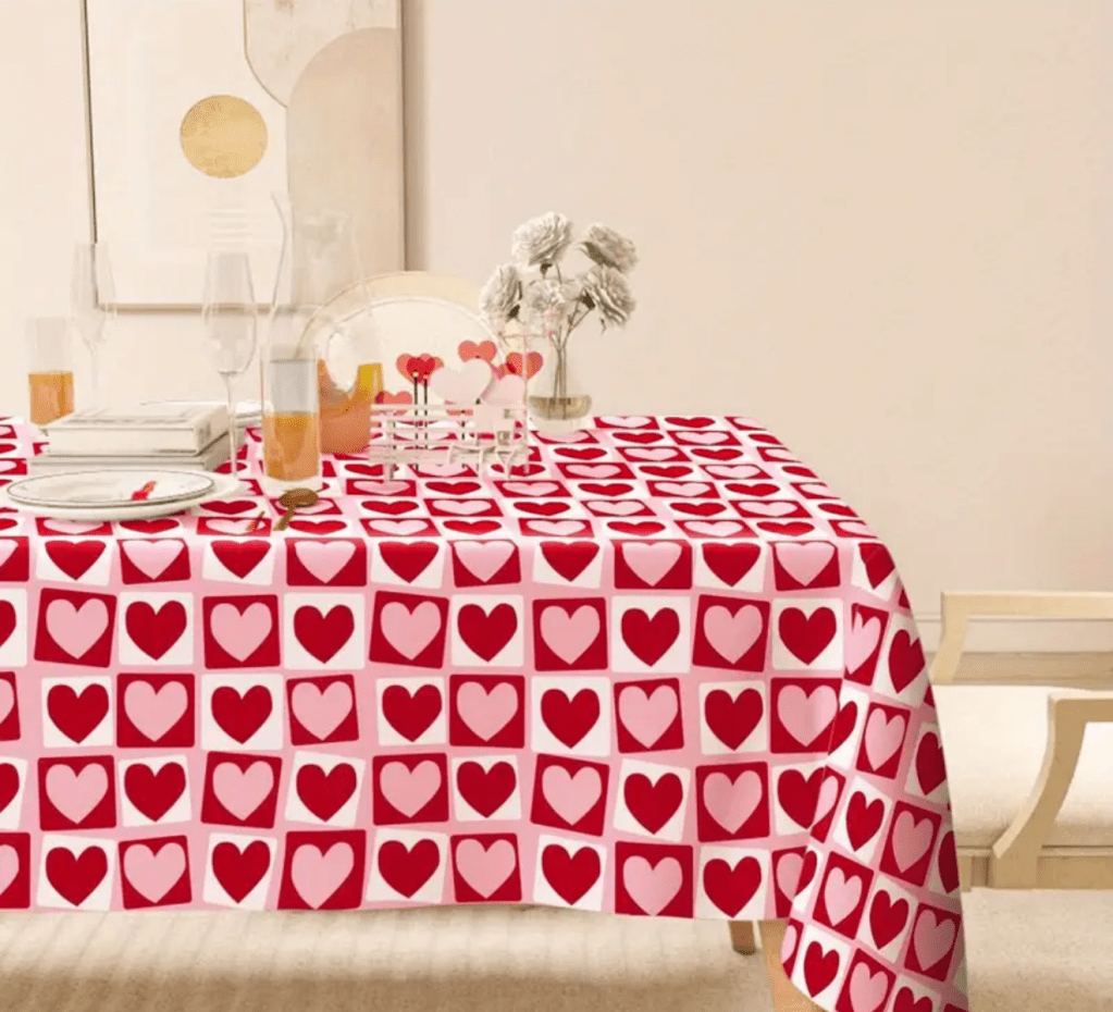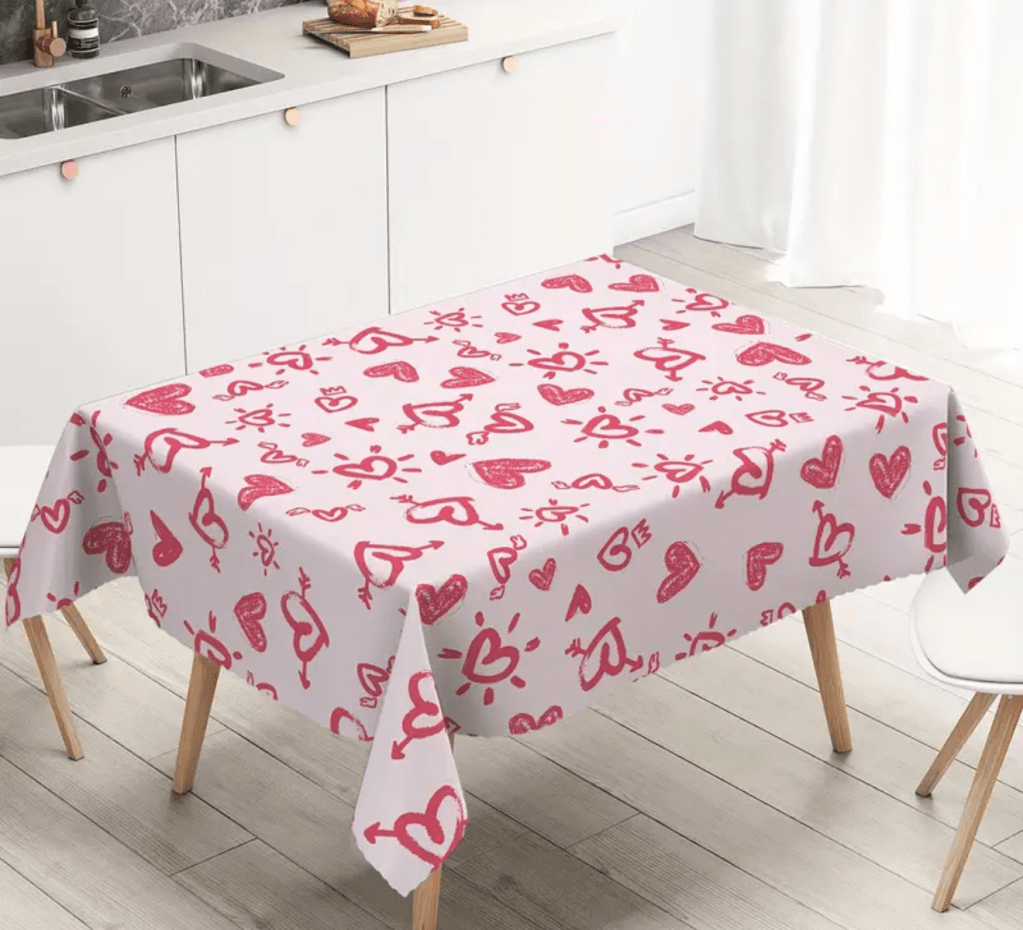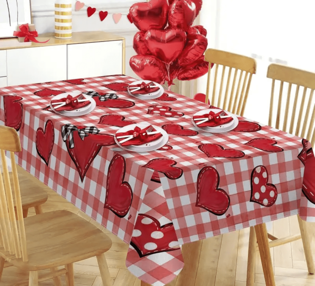 on Valentine’s Day tablecloth/ Mantel para San Valentín