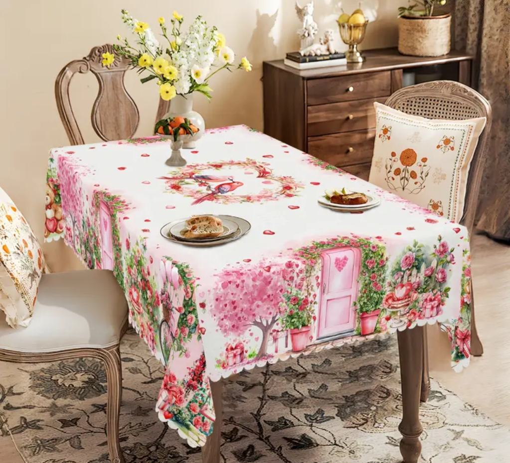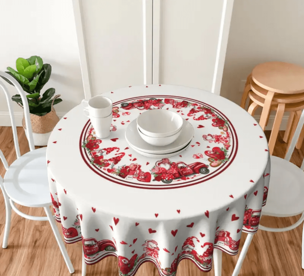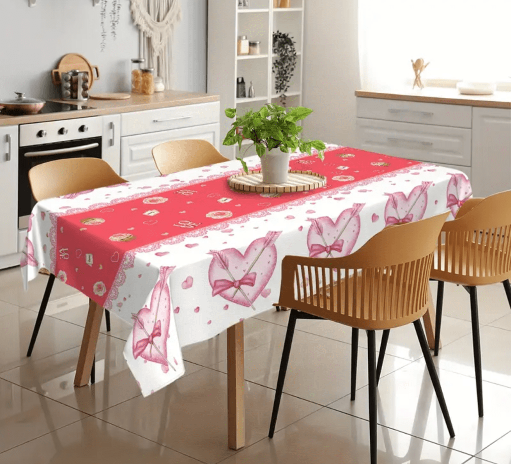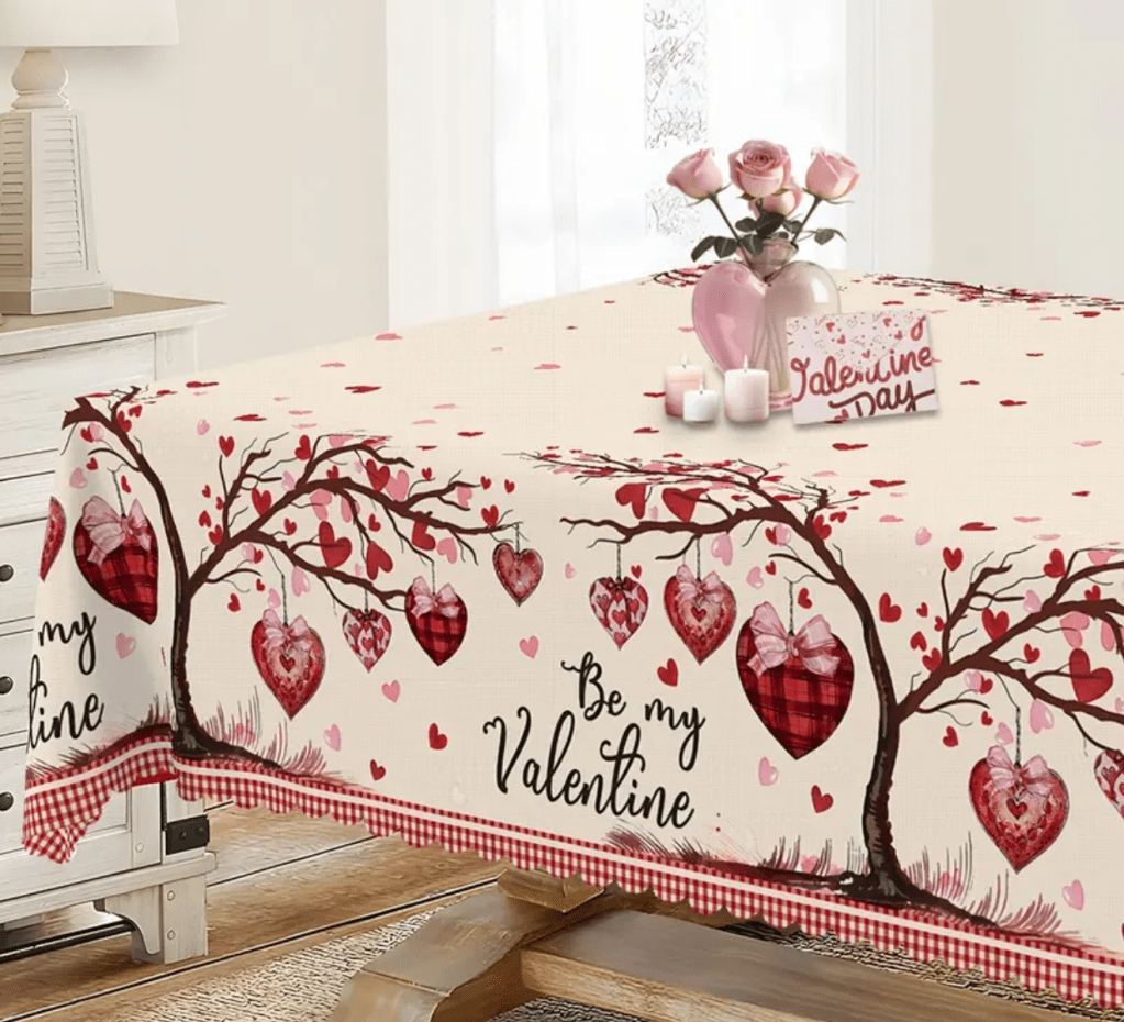on Valentine’s Day tablecloth/ Mantel para San Valentín